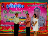 เนื่องในวันเกษียณอายุราชการของ ครูปองภพ ศรีชนะกุล 16 กันยายน 2558 คณะครูนักเรียนและบุคลากรทางการศึกษาโรงเรียนหนองงูเหลือมพิทยาคมจึงได้ร่วมมุทิตาจิตให้กับ ครูปองภพ ศรีชนะกุล |