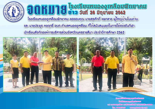 โรงเรียนหนองงูเหลือมพิทยาคม ขอขอบคุณ นายสุรศักดิ์ แพกลาง ผู้ใหญ่บ้านโนนด่าน