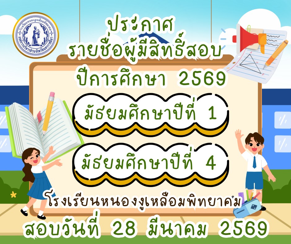 รายชื่อผู้มีสิทธิ์สอบคัดเลือกเข้าศึกษาต่อ ชั้นมัธยมศึกษาปีที่ 1 และชั้นมัธยมศึกษาปีที่ 4 ปีการศึกษา ๒569